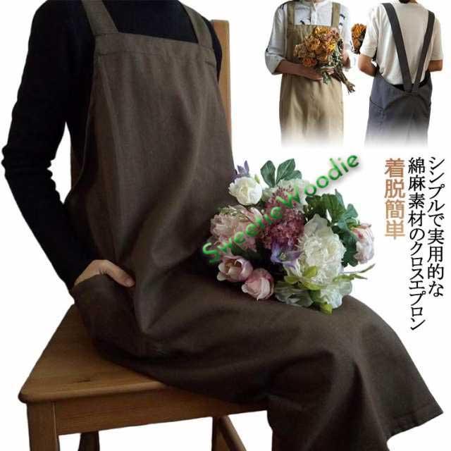 大人 かぶるだけ ゆったり 綿麻 エプロン ワンピース 黒 バッククロス 保育士 かわいい かぶり 無地 レディース リネン風 ポケット付き オーバー エプロン x型 着脱簡単 北欧 ナチュラル ロング丈 洗える 花屋 カフェ キッチン 美容師 料理人