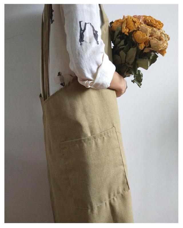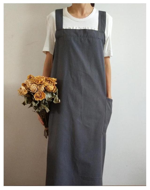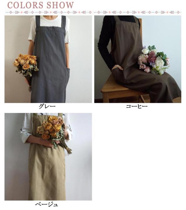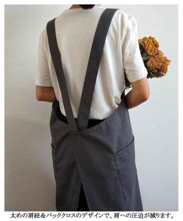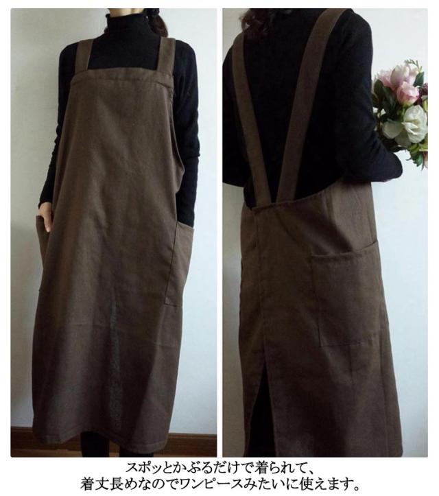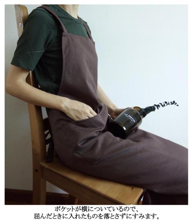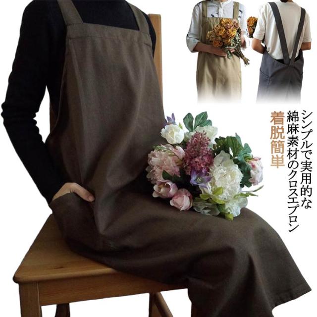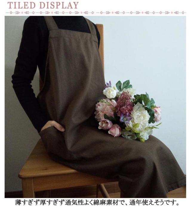 | シンプルで実用的な綿麻素材のクロスエプロン。 スポッとかぶるだけで着られて、着丈長めなのでワンピースみたいに使えます。 薄すぎず厚すぎず通気性よく綿麻素材で、通年使えそうです。 ポケットが横についているので、屈んだときに入れたものを落とさずにすみます。 太めの肩紐&バッククロスのデザインで、肩への圧迫が減ります | |