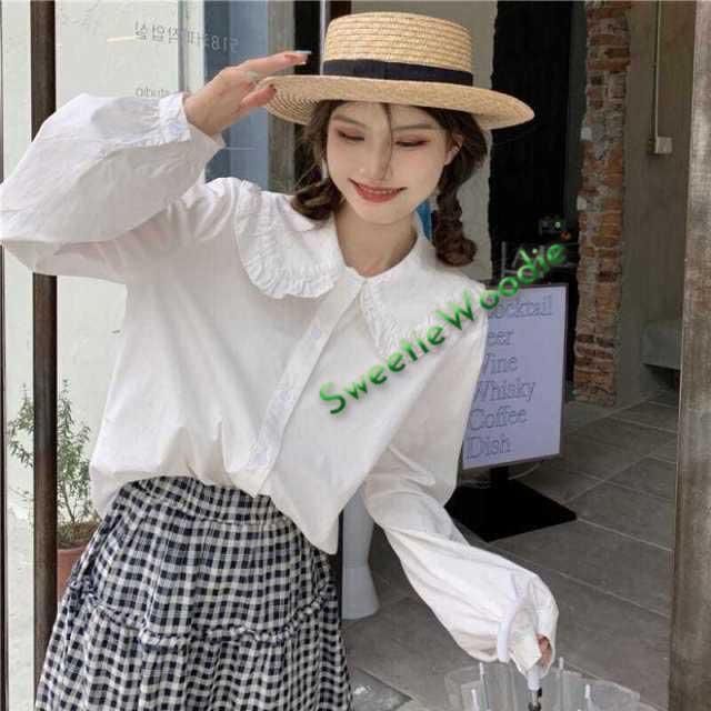 ブラウス シャツ レディース 丸襟 長袖ブラウス 可愛いブラウス 森ガール系 長袖 学生 キュート 大きなサイズ 通学 ゆったり ホワイト 白 着やせ