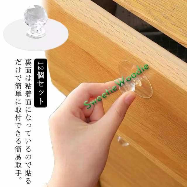 取っ手 つまみ クリア 12個セット 引き戸取手 引き出し取手 交換 工事不要 粘着式 両面テープ式 強力 家具 戸棚 引き出し 取手 ハンドル 引き戸 引手 透明 シンプル おしゃれ 取り付け簡単 補助取っ手 補助ハンドル 【送無】