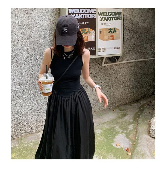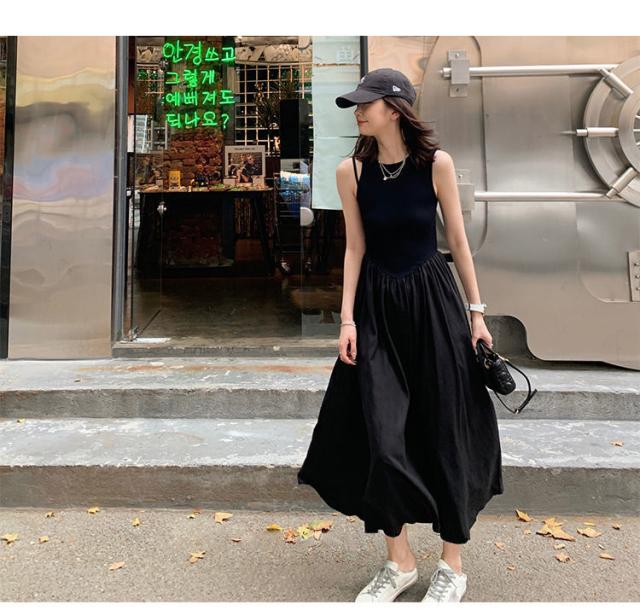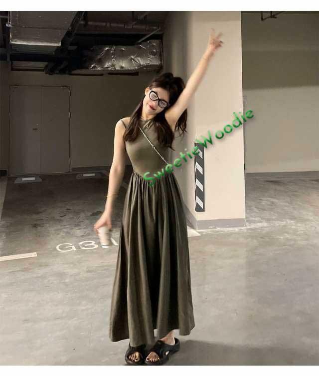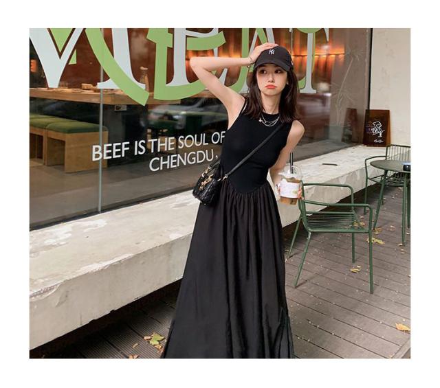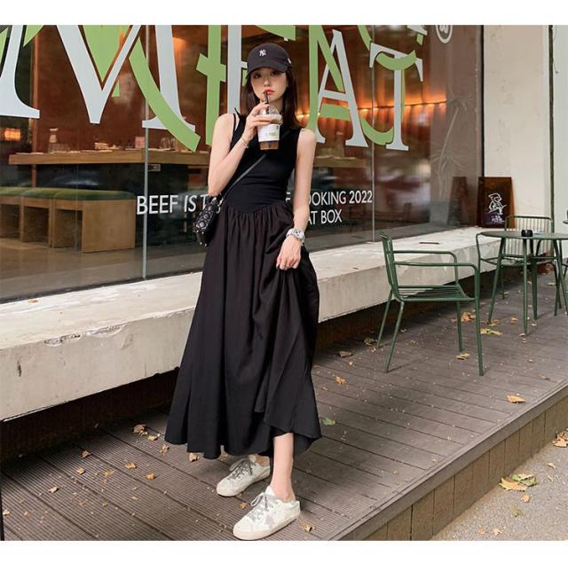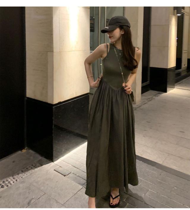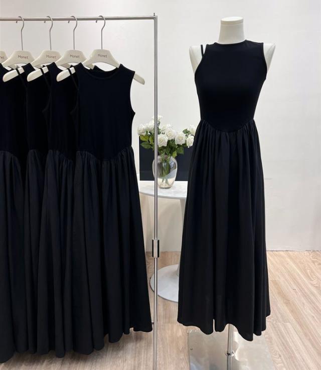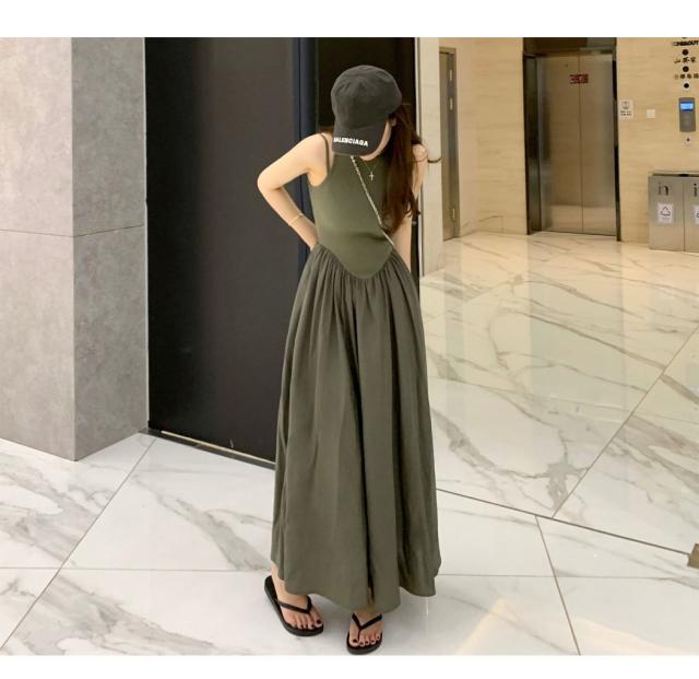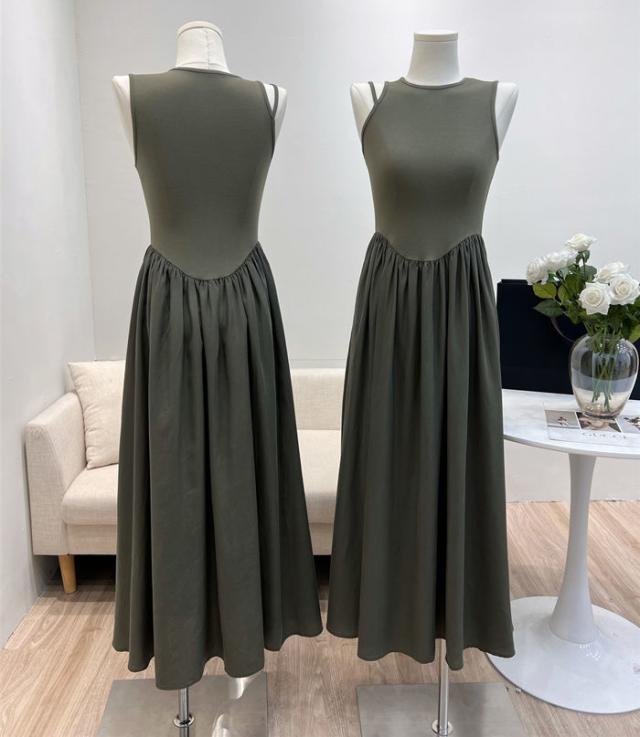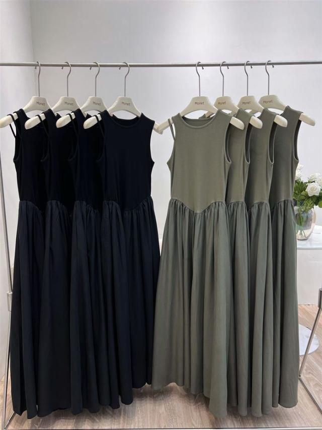 送料無料 ドッキングワンピース レディース カットソー 切り替え ワンピース フレア ドッキング ワンピース ノースリーブ フレアスカート スタイルアップ