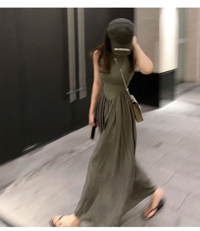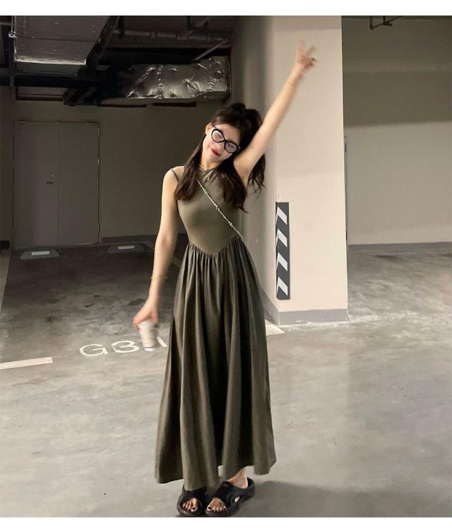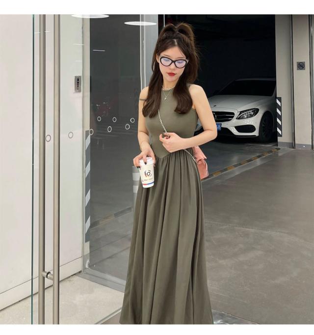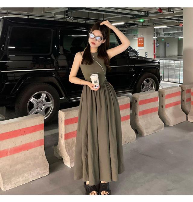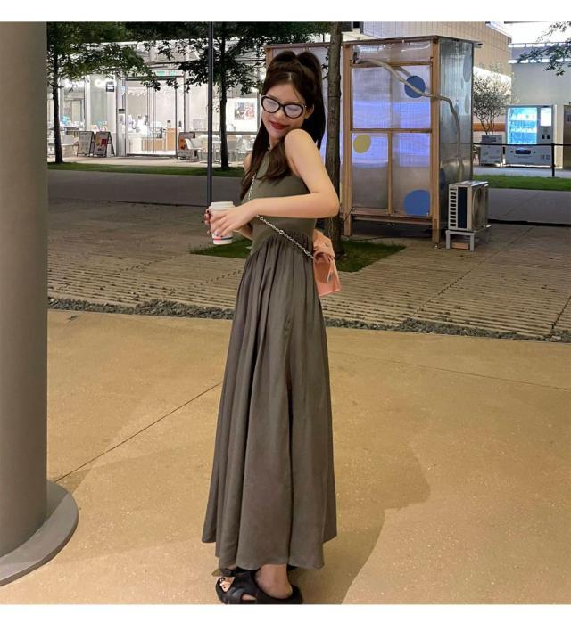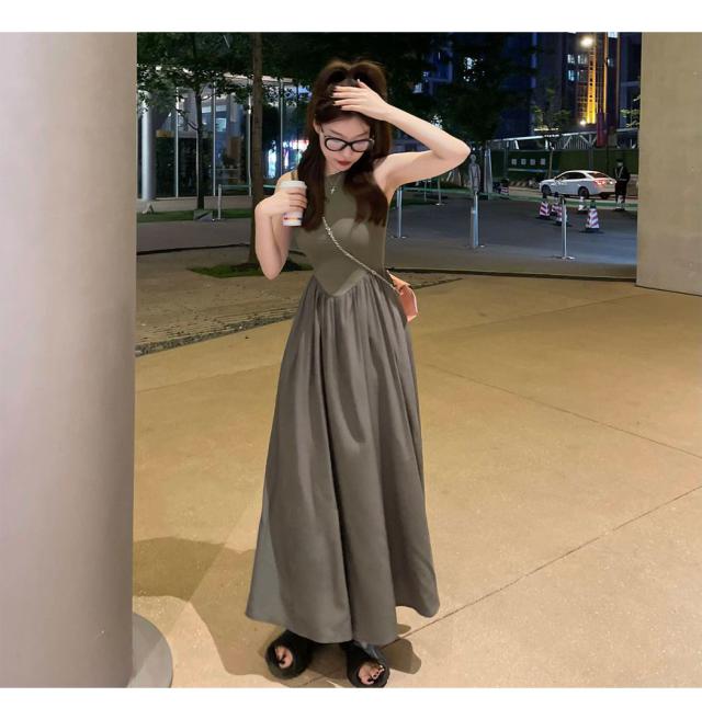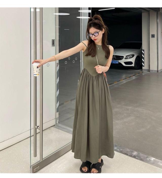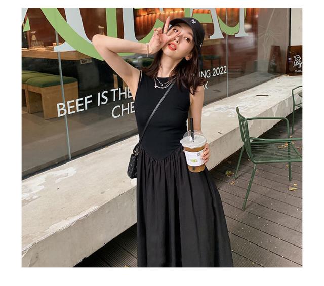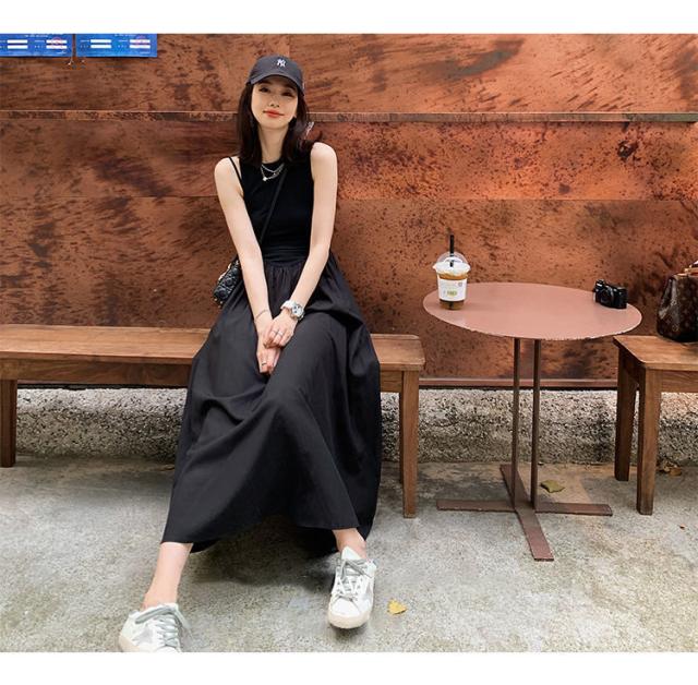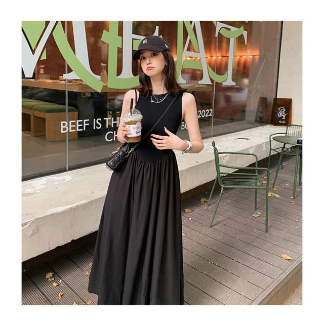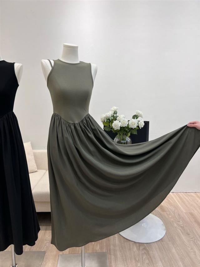 送料無料 ドッキングワンピース レディース カットソー 切り替え ワンピース フレア ドッキング ワンピース ノースリーブ フレアスカート スタイルアップ