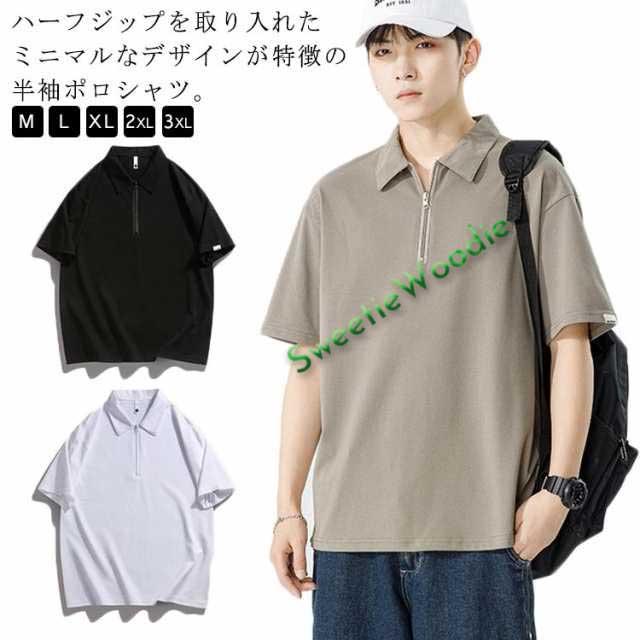 ポロシャツ 半袖 tシャツ メンズ ハーフジップ ポロ 鹿の子 ドライ 接触冷感 涼しい 吸水速乾 ストレッチ 薄手 プルオーバー ゆったり ルーズ 無地 ゴルフ カジュアル オフィス 通勤 大きいサイズ 黒 白 ブラウン 韓国風 T/C 【送料無料】