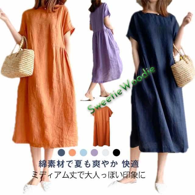 春夏 Aラインワンピース 綿ワンピース ロングワンピース ゆったりワンピ ゆったりワンピ 膝下丈 ワンピース 夏用 30代 40代 薄手 50代 母の日 ギフト