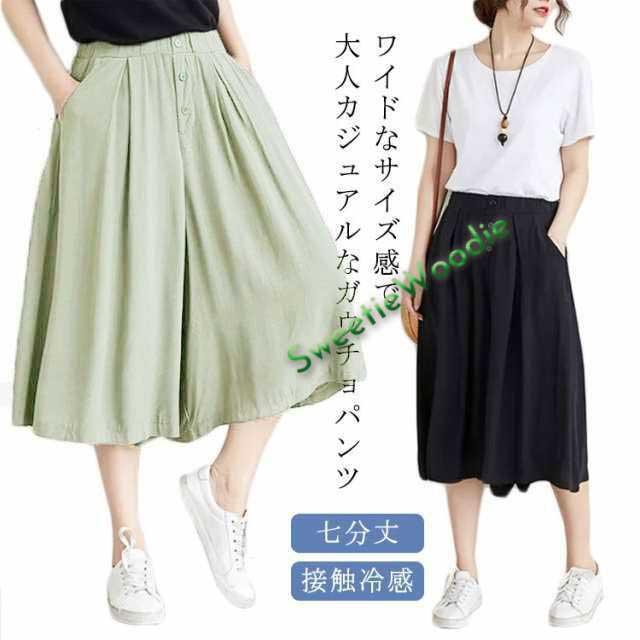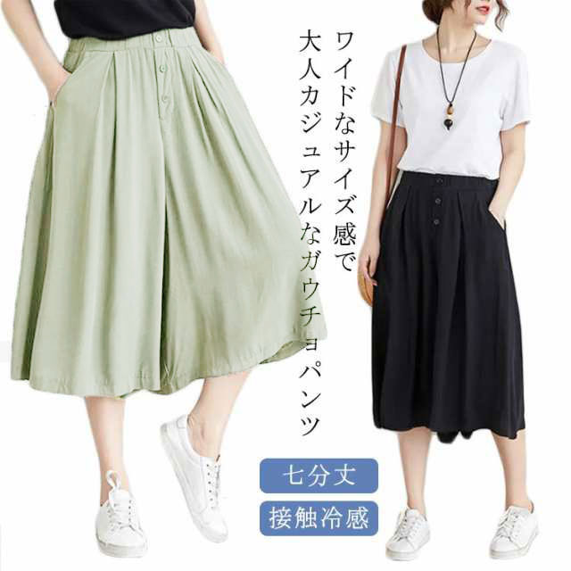キュロットパンツ キュロットスカート パンツ ズボン 七分丈 夏 ハーフパンツ レディース キュロット スカーチョ ワイドパンツ ウエストゴム ひんやり 接触冷感 きれいめ 体型カバー 短パン ゆったり 春 ショートパンツ フレアパンツ 20代 30代 40代 50代 送料無料