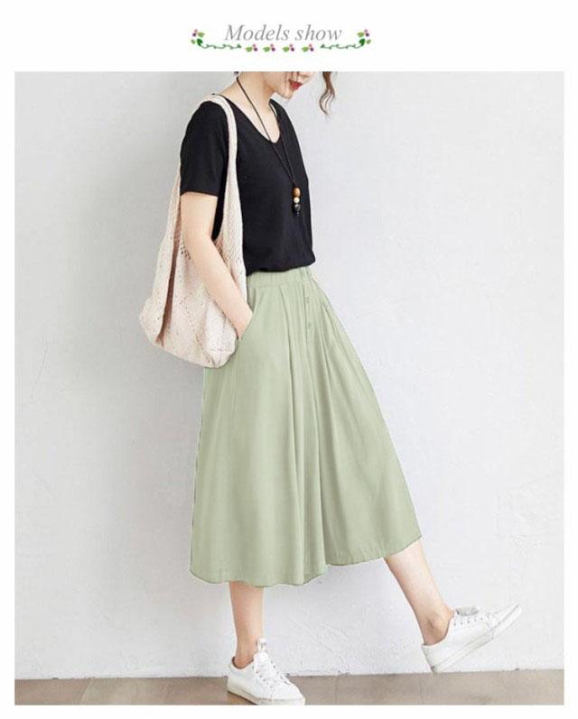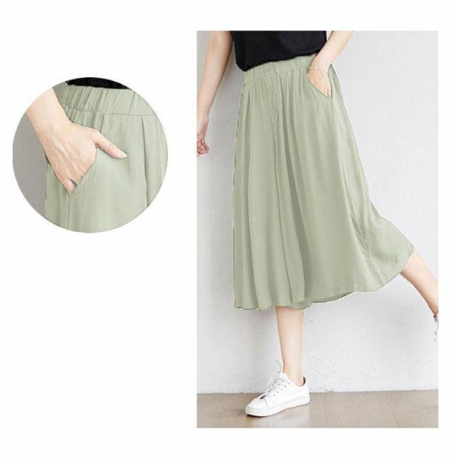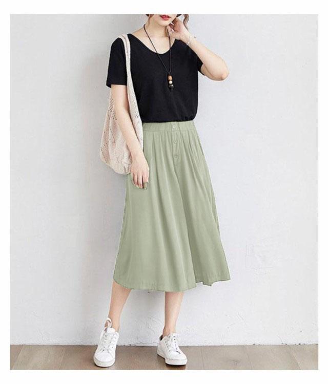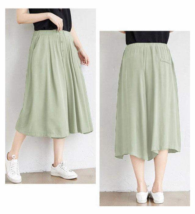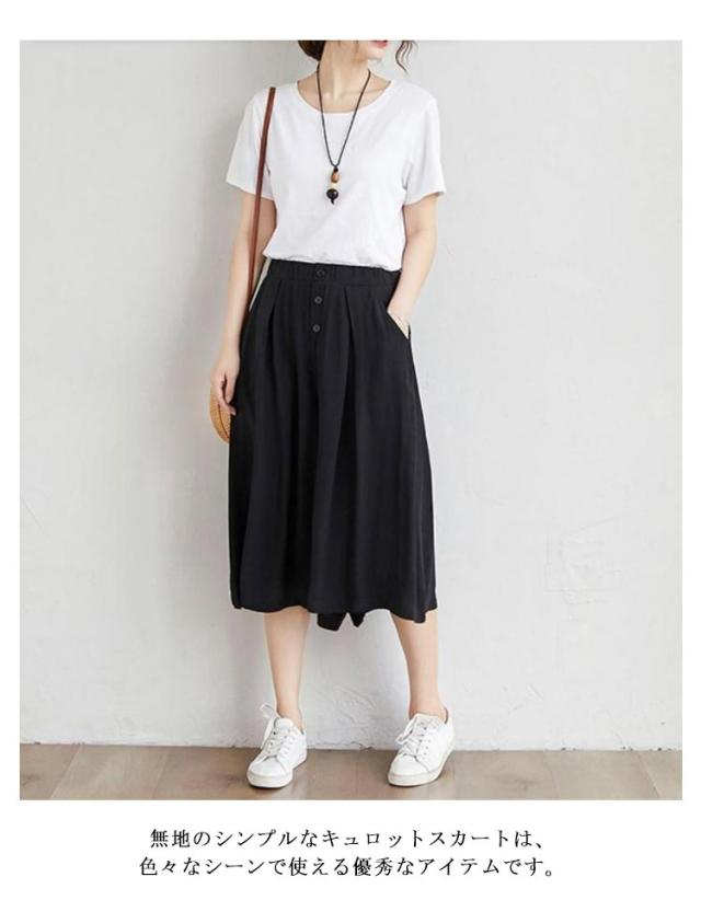 | ワイドなサイズ感で大人カジュアルなガウチョパンツ 薄めの素材を使い、穿く瞬間に爽やかで涼しげな感じになります ウェストがゴム付き、とってもカンタンに着脱できます 大人の楽ちん美ゆるシルエットで春夏のリラックススタイルにピッタリ 無地のシンプルなキュロットスカートは、色々なシーンで使える優秀なアイテムです。 | |