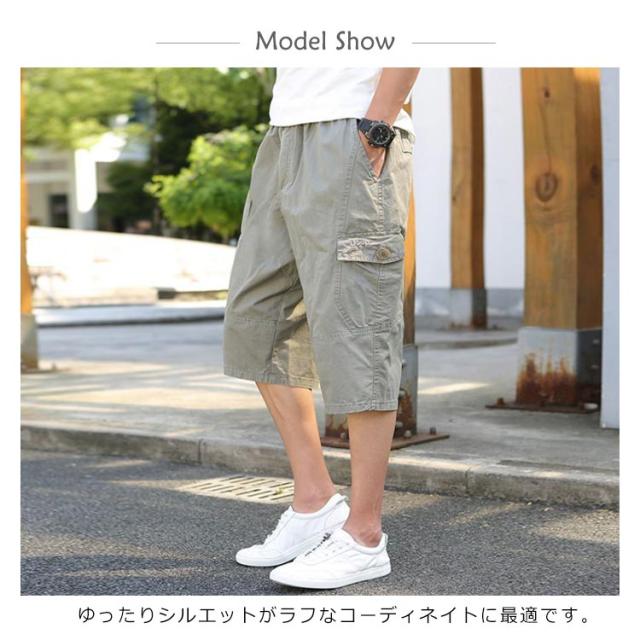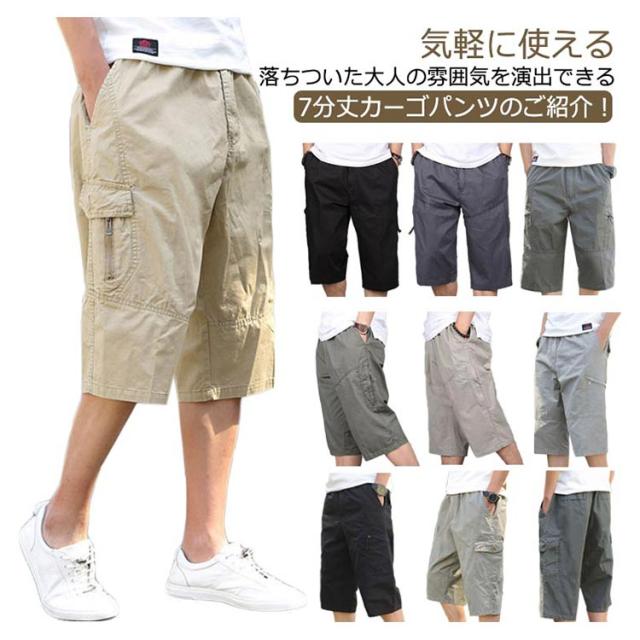 カーゴパンツ メンズ 7分丈 クロップドパンツ ズボン カジュアル ボトムス ゆったり 体型カバー 夏服 カーゴ カジュアルパンツ ひざ下 ハーフパンツ イージーパンツ ボトムス ダンス ストリート系 大きいサイズ アウトドア 春夏 無地 シンプル 送料無料 ギフト 部屋着