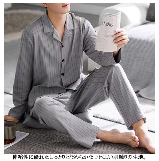 ナイトウェア ストライプ 無地 長袖 前開き 夏向き 寝巻き パジャマ シャツ 男性 テーラー襟 綿 メンズ 父の日 プレゼント 紳士 おそろい 春 男の子 旦那 チェック 総柄 寝巻き 男性 テーラード コットン ギフト プレゼント 敬老の日 誕生日 オールシーズン