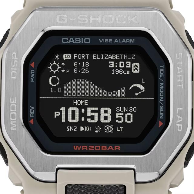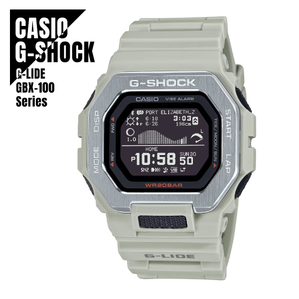 世界のトップサーファーから支持を受けるG-SHOCKのスポーツラインG-LIDE。スマートフォン連携機能を搭載したGBX-100のビーチの自然をイメージしたカラーです。