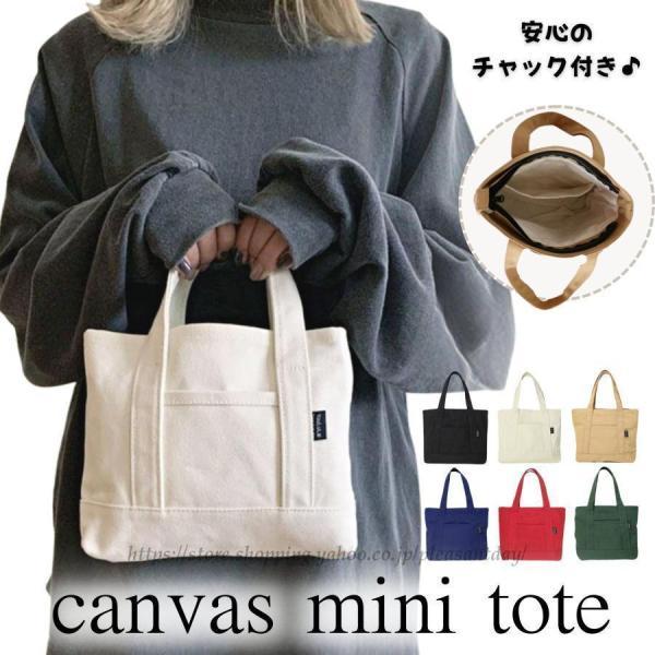 ミニトートバッグ ミニトート トートバッグ 帆布 キャンバス ファスナー付き チャック おしゃれ レディース 軽量 収納 布 メンズ 黒 白 小さめ 手提げ