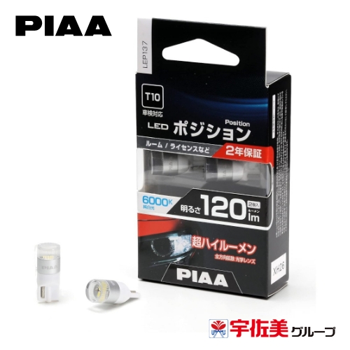 PIAA ポジション用バルブ ルーム/ドアランプ LED T10 2個入 6000K 120lm LEP137