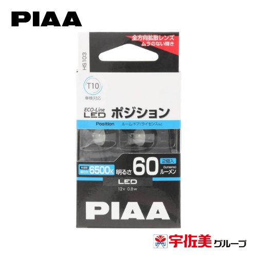 PIAA ECO-Lineシリーズ ポジション LEDバルブ T10/60lm 2個入 6500K HS103