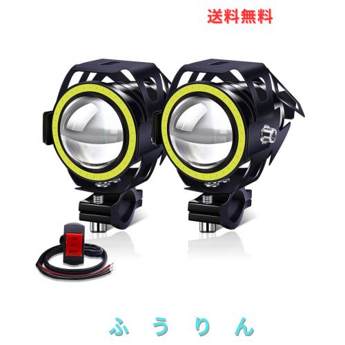 Aoling バイク フォグランプ 12V 24V LED フォグライト ヘッドライト 補助灯 ホワイトイカリング付き ON/ON/OFFスイッチ付き オートバイ