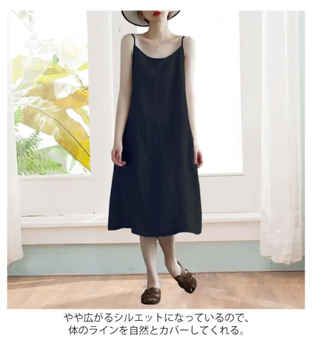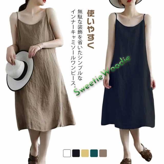 キャミ 春 レディース キャミワンピース インナー ワンピース キャミワンピース ペチコート キャミソールワンピース 夏 秋 ロング リネンライク カジュアル キャミワンピ ワンピ下 透け防止 ナチュラル スリップ
