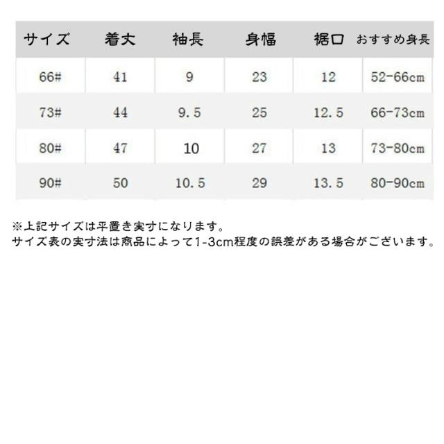 | 【全20色】【夏にぴったり!】【59?90cm】 前開きでお着替え簡単! 柔らかな肌触りと伸縮性のある生地でストレスフリー! 通気性・吸湿性が優れており、柔らかくて赤ちゃんの肌に優しい 可愛くておしゃれなプリントで、赤ちゃんの可愛さを引き立てる。 通気性も吸水性も優れていて、着心地も抜群です。 | |
