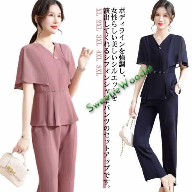 ペプラム パンツスーツ 結婚式 レディース スーツ 夏 セットアップ パンツ ママスーツ フォーマルスーツ テーパードパンツ スリット入り フレア袖 春夏 大きいサイズ フェミニン おしゃれ 可愛い 20代 30代 40代 XL 2XL 3XL 4XL 5XL