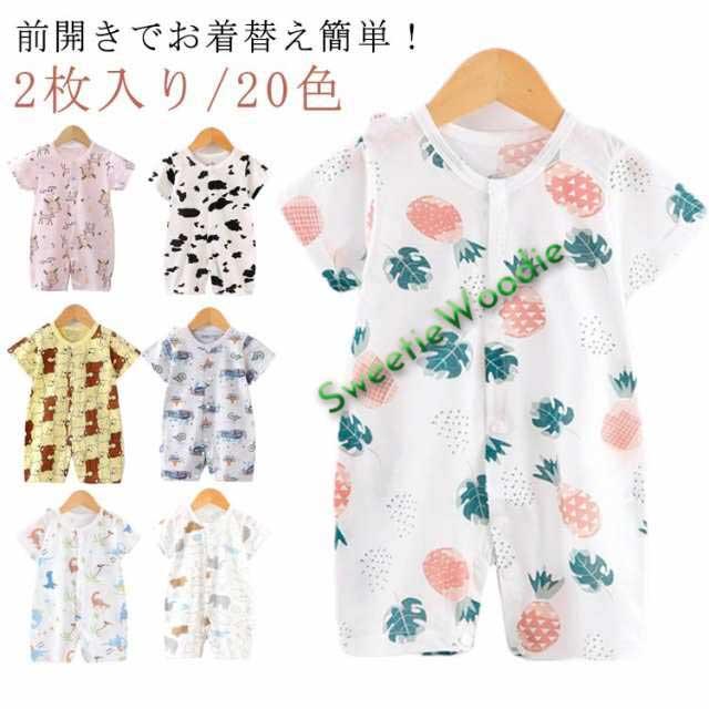 カバーオール ロンパース 綿 ベビー服 2枚入り 全開き 半袖 子供服 赤ちゃん 男の子 保育園 半袖ロンパース 新生児 前開き 夏服 女の子 肌着 ロンパース 春夏 ナチュラル 部屋着 出産祝い ギフト 可愛い シンプル コットン ルームウェア