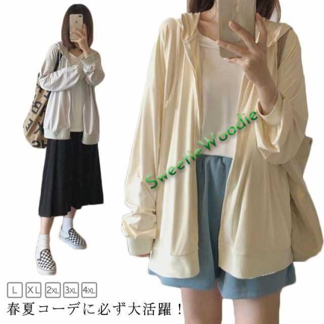 長袖 薄手 UVパーカー ゆったり UVカット ロングパーカー レディース 夏 アウター UVカット パーカー フード付き トップス 春 夏用 カーディガン 紫外線対策 おしゃれ きれいめ ロング丈 体型カバー 大きいサイズ 大人 可愛い 涼しい UVケア 冷房対策 通勤