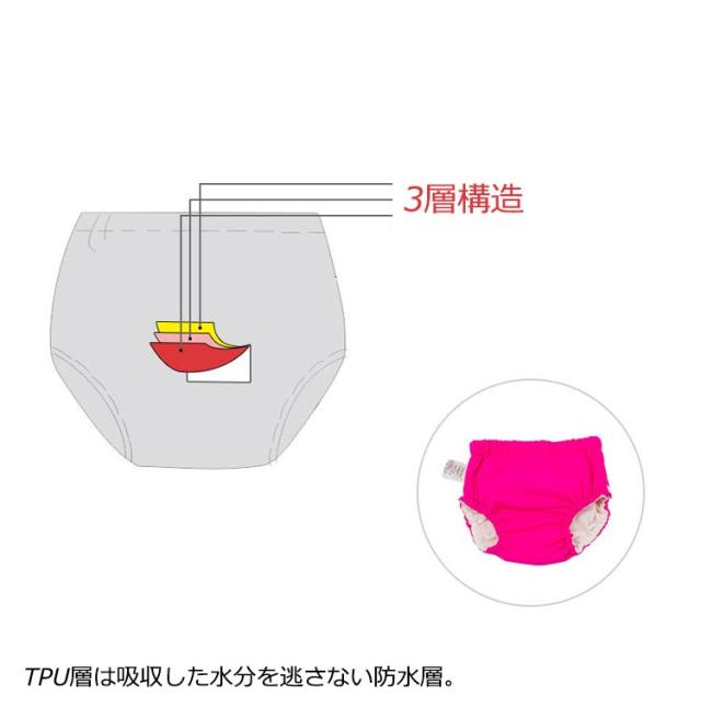 | 【2枚セット!】 【5 ? 16KG 適用!】 3層構造で漏れをしっかりふせぐオムツ機能付きインナー水遊びパンツ。 簡単スナップ付きで着替えの負担を軽減。 ウエストと太ももはゴムでぴったりフィットし固形物をもらしません。 TPU層は吸収した水分を逃さない防水層。 | |