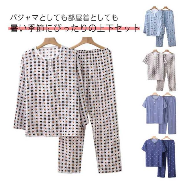 寝間着 涼しい 部屋着 寝巻き 夏用 パジャマ メンズ 上下セット 春夏 パジャマ 長袖 半袖 7分丈 薄手 紳士 男性 父の日 シニア 敬老の日 ギフト プレゼント 入院