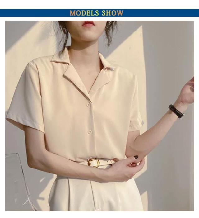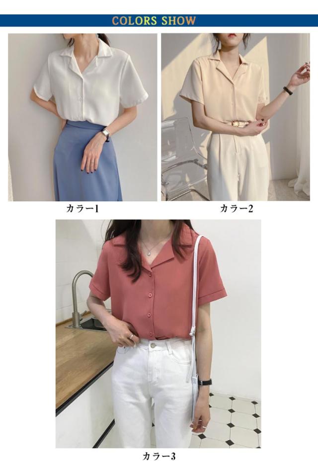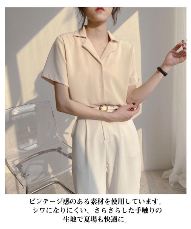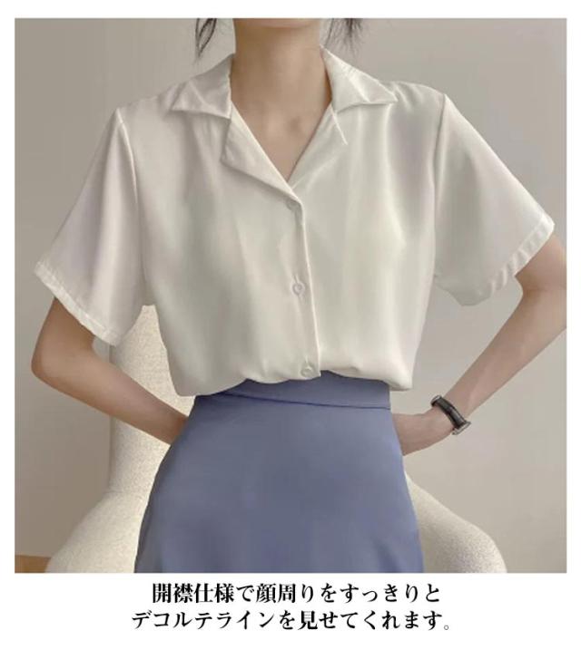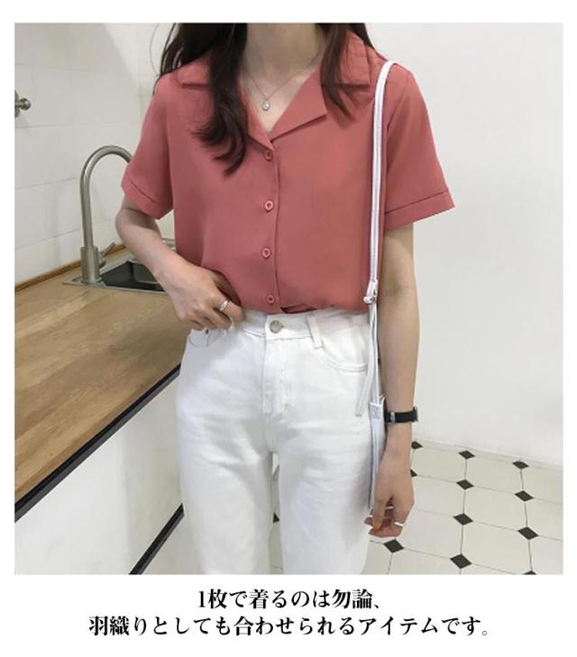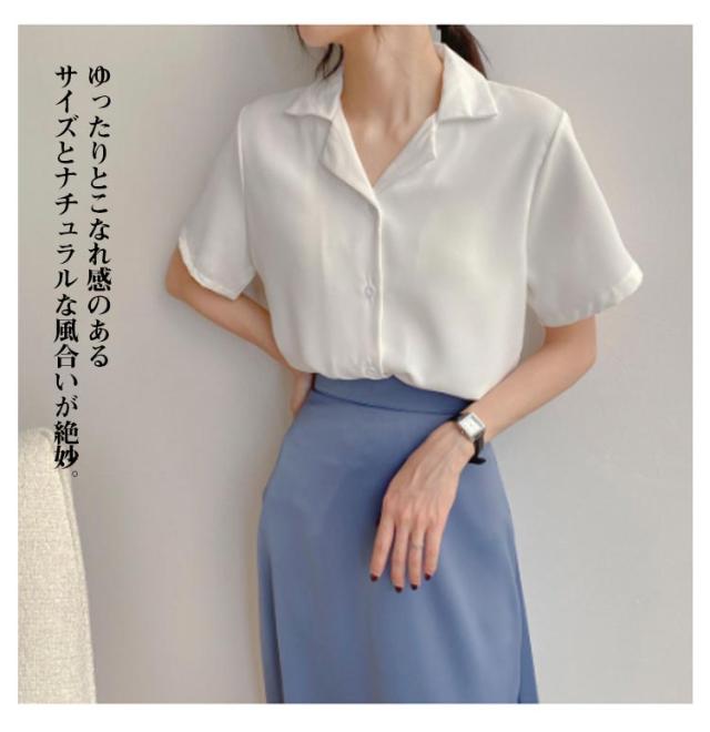 シャツ しわになりにくい 無地 半袖 シャツ ブラウス 透けない ブラウス オフィス 五分袖 羽織り 襟付き レディース カジュアル トップス 開襟シャツ 前開き オーバーサイズ 大きいサイズ ゆったり きれいめ 大人可愛い