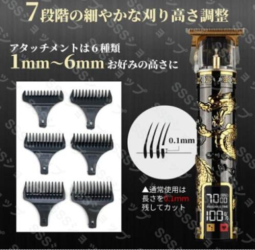 バリカン 散髪 コードレス ヘアカッター 軽量 静音 USB充電 ヘアートリマー 7段階 長さ調整 多機能バリカン シェーバー 理髪 髭剃り