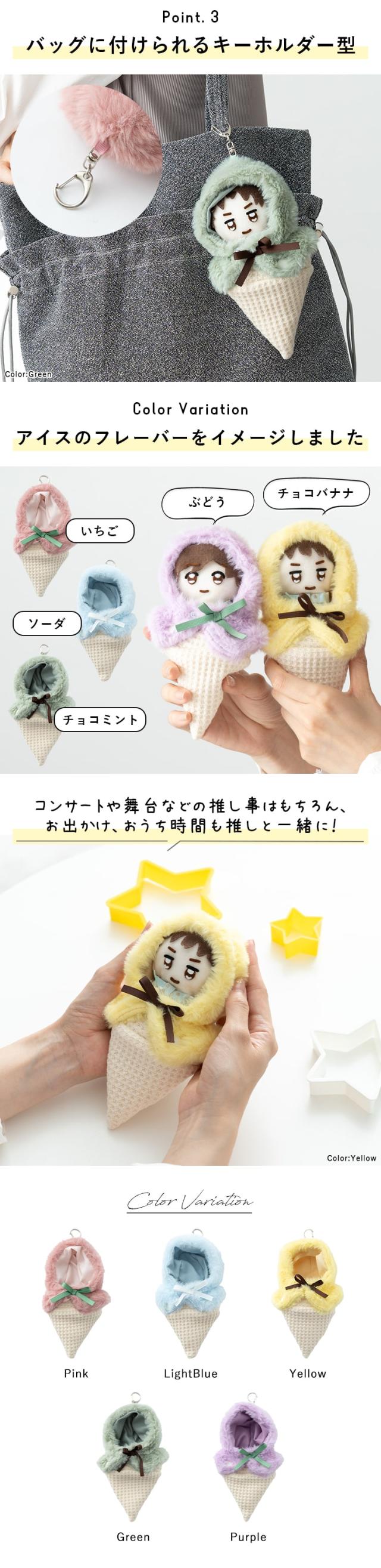 メンバーカラーに合わせて選べるカラフルなアイスぬいポンチョキーホルダー。