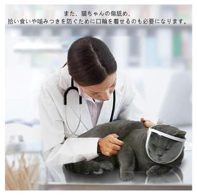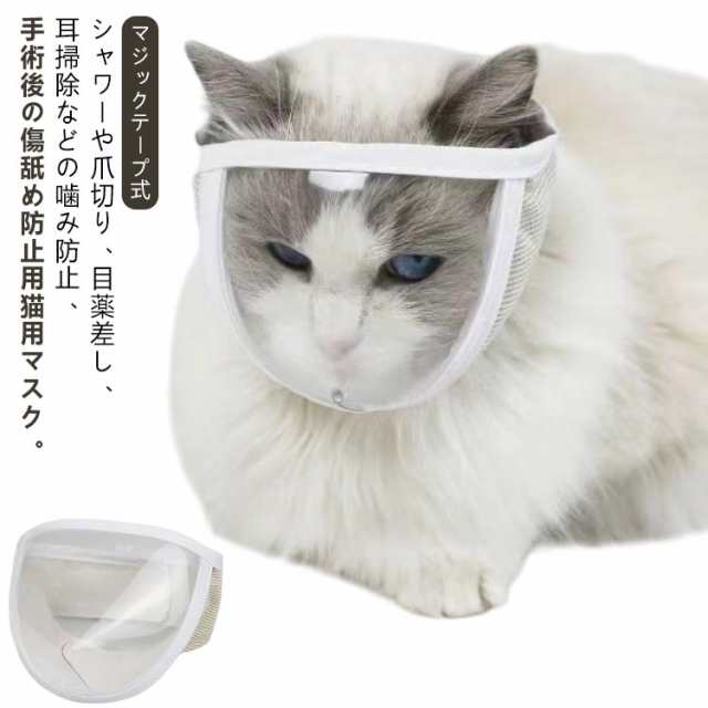 | シャワーや爪切り、目薬差し、耳掃除などの噛み防止、手術後の傷舐め防止用猫用マスク。【マジックテープ式】 不安も軽減する透明タイプです。 前には通気穴が開いており、通気性も確保して蒸れを防ぐ仕様です。 着脱はマジックテープでカンタン、スムーズ。 猫ちゃんのお風呂、爪切り、注射、投薬の場合でよく使うことができます。 また、猫ちゃんの傷舐め、拾い食いや噛みつきを防ぐために口輪を着せるのも必要になります。 | |