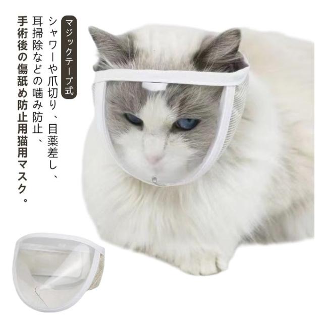 フェイスマスク 猫 点耳薬 美容 猫用マスク 爪切り 耳掃除 通気性 噛みつき防止 マジックテープ 猫用品 シャワー 猫 透明 拾い食い防止 ネコ ねこ エリザベスカラー キャットマスク 猫の爪切り補助マスク ペットマスク 介護ケア