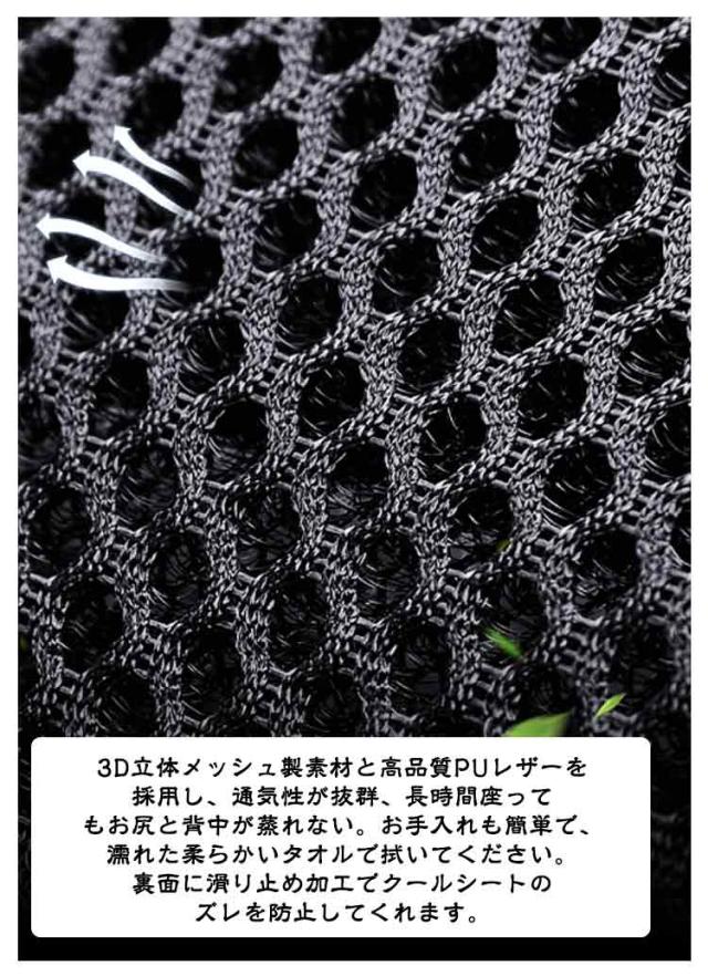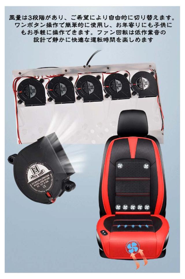 | 【涼風送風機能&8個強力ファン】カーシートカバーの中には強力ファンを8つ内蔵しており、高速回転で除熱効果抜群。下の部分は一つの大型送風機を搭載しており、回転速度が5000回転/分で、腰部には7つの小型送風機が内蔵しており、回転速度が3000回転/分で、お尻と背中がひんやりして涼しくなり、長距離も汗をかかず快適です 【3段階風量調節可】風量は3段階があり、ご希望により自由的に切り替えます。ワンボタン操作で簡単的に使用し、お年寄りにも子供にもお手軽に操作できます。ファン回転は低作業音の設計で静かに快適な運転時間を楽しめます 【革新的な自動起動/停止機能】冷風送風機能は自動・手動の2モードから自由に切り替えることができます。自動モードで、座席につくと、自動的に送風モートが起動します。デフォルトモードは強モードで調節不可です。座席から離れると、送風モードが自動的に停止します 【12V電圧可】シガーライターが付きますが、12Vの軽/普通車に対応できます。電源はシガーソケットから簡単に取れます。パチッと止めるだけで取付もカンタン!通気性抜群のメッシュ素材。背中やお尻がムレません 【通気性抜群&滑り止め加工】3D立体メッシュ製素材と高品質PUレザーを採用し、通気性が抜群、長時間座ってもお尻と背中が蒸れない。お手入れも簡単で、濡れた柔らかいタオルで拭いてください。裏面に滑り止め加工でクールシートのズレを防止してくれます。 | |