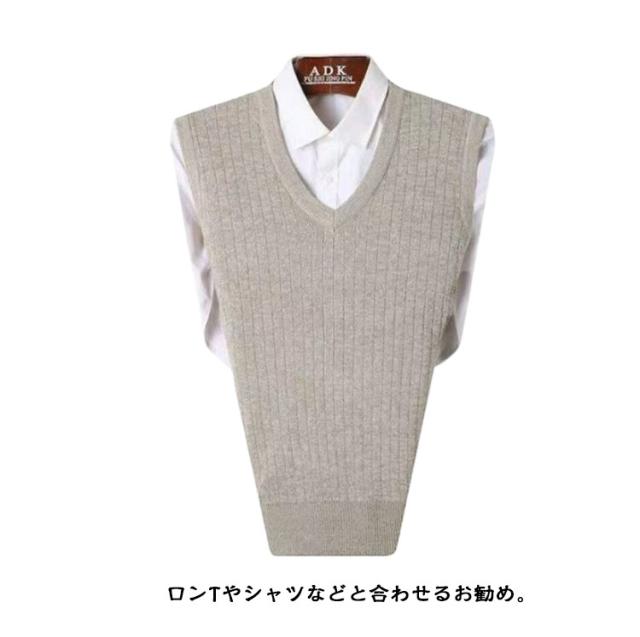 | 【ニット素材、オールシーズン着用できるのメンズ用ニットベスト】 程よい厚みの編地ですっきりときれいに重ね着スタイルが楽しめるベスト。 シンプルな定番デザイン。 コーディネートがやすい。 Vネックベストデザインで、カジュアルからオフィスまで幅広く対応。 カジュアルなのにオシャレ、コーディネートも楽。定番のシャツにさっと羽織っておしゃれの完成です。 ロンTやシャツなどと合わせるお勧め。 | |
