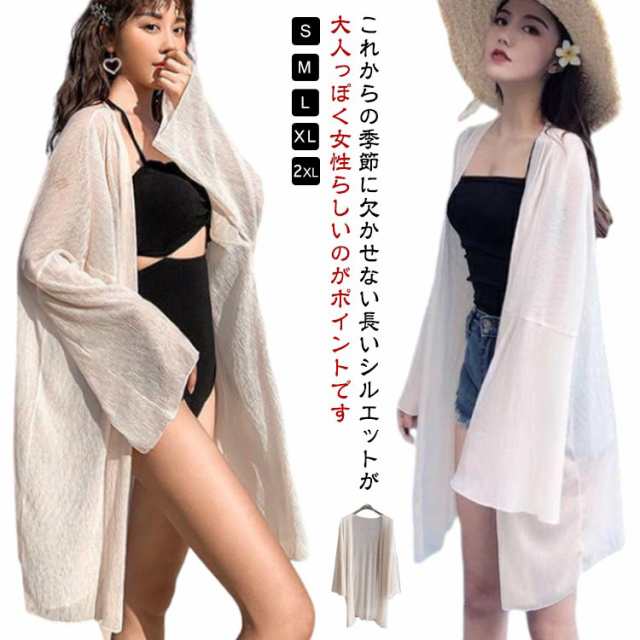ビーチガウン ロングカーディガン ロングカーデ カーディガン レディース 薄手 夏用 シフォンカーディガン ロングシースルー 春 ビキニ ビーチウェア 冷房対策 紫外線防止 海水浴 サマー 涼しい ビーチカーディガン 日焼け防止 夏 ロング uv UVカット 水着