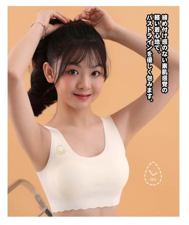 | 【ジュニアブラ】【シームレス】【4color】 おしゃれなジュニアブラ。初めてのブラ選びにおすすめ♪ 締め付け感のない素肌感覚の軽い着心地で、バストラインを優しく包みます。 肌あたりに配慮したシームレスデザイン。フラットで滑らかな着心地が魅力です。 通気性・吸湿性に優れ、汗ばむ季節も快適にお過ごしいただけます。 かわいさと機能性を両立したおすすめの一品です。 | |