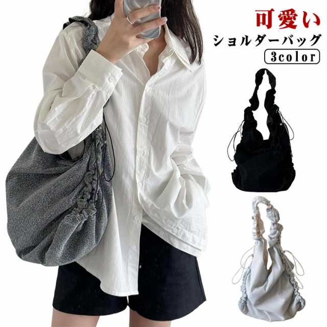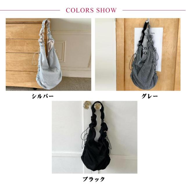 斜めがけ ショルダーバッグ ギャザーハンドルバッグ くしゅくしゅ マザーズバッグ バッグ フリル ギャザー ワンショルダー トートバッグ バッグ ショルダーバッグ フリルハンドル トートバッグ レジャー ショルダーバッグ シルバー グレー