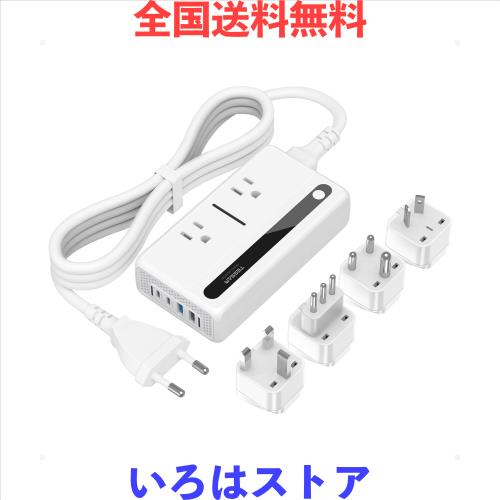 【6台同時充電可能】変圧器・変換プラグ・電源タップ・USB急速充電器が一体となった多機能タイプ。ACコンセント2口とUSBポート4口(USB-C×2)を備え、最大6台の機器を同時に充電できる電源変換器です。これ1台で各種アダプターが不要になり、荷物もすっきり。海外出張や旅行をより快適にお楽しみいただけます。旅行 便利グッズです。