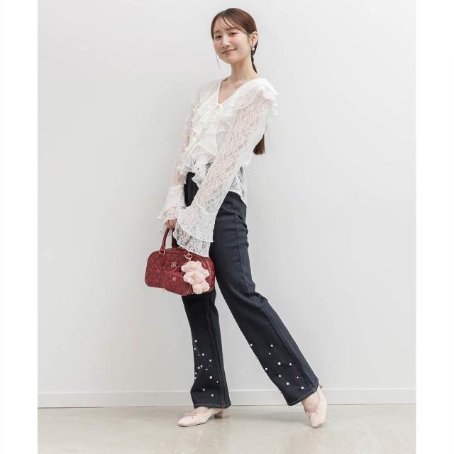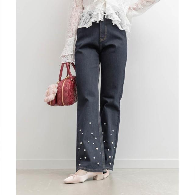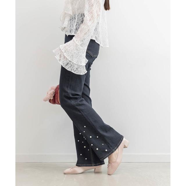 ハイウエストパールフレアデニム
