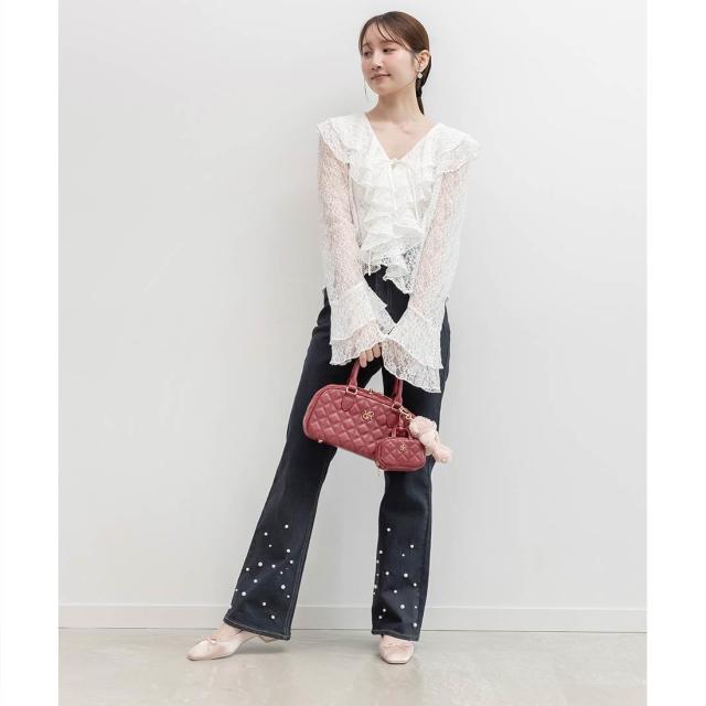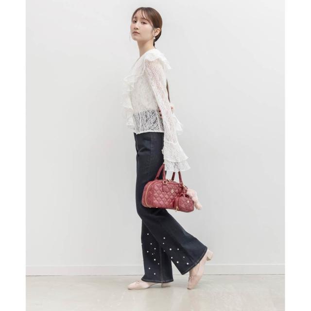 ランダ(RANDA)/ハイウエストパールフレアデニム