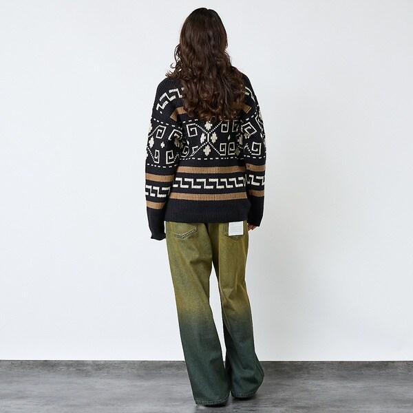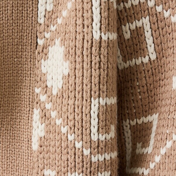 ざらつきの無い滑らかな素材でザックリ編まれた厚地ニットは着心地はもちろん見た目にも温かい。