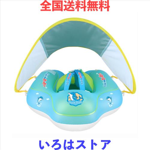 浮き輪 子供用 ベビー浮き輪 ベビーボート フロート 足入れ SPF50+ 取り外し可能なサンシェード 水泳補助具 日焼け止め 水浴 ビーチ 夏グ