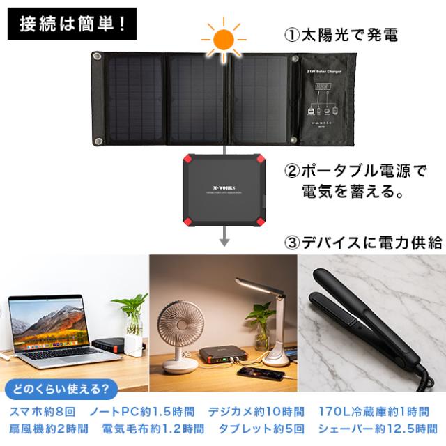 SaiEL ソーラーパネル&ポータブル電源セット MW-SP8821(ポータブル電源 ソーラーパネル セット 小型 コンパクト) 1-2W