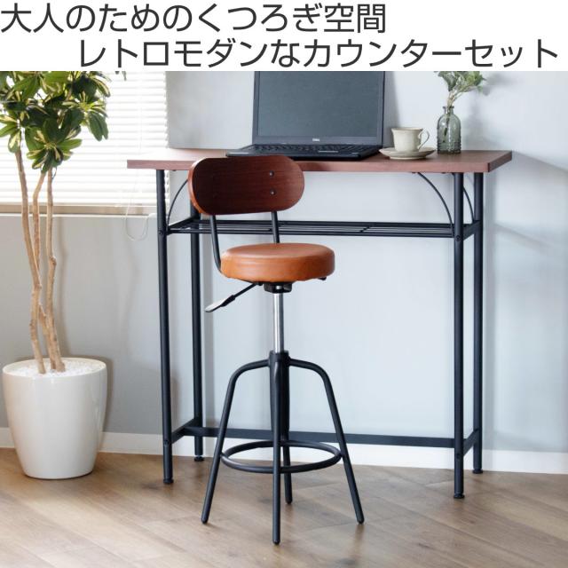カウンターチェア テーブル 2点セット タムチェア ( バーチェア セット 奥行 35cm スリム 椅子 回転 高さ調節 チェア 机 棚付き 小物置き 背もたれ付き 丈夫 簡単組立 木製 おしゃれ )