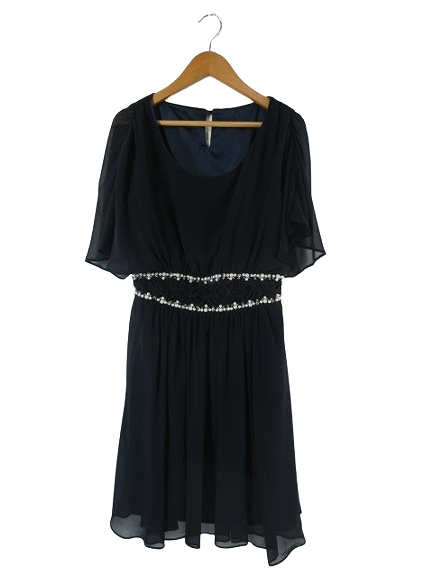 【中古】ボ・ドレ Bo・Dre ワンピース ひざ丈 刺繍 レース ビジュー 無地 サイズM ネイビー QQQ レディース