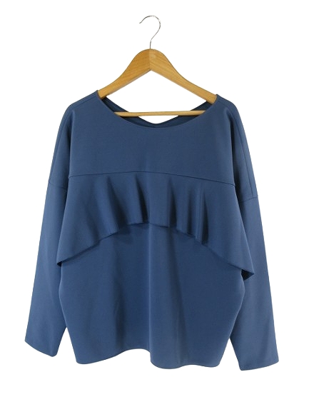 【中古】シップス SHIPS カットソー Tシャツ フリル Vネック 長袖 無地 ブルー QQQ メンズ