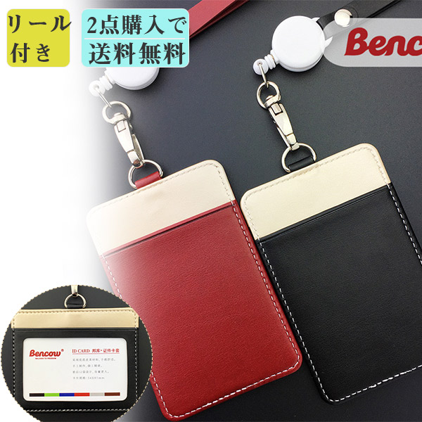【2点購入で送料無料】 パスケース カードケース リール付き 伸びる レザー 革 ICカードケース 伸縮 定期入れ IDカード おしゃれ 縦型 横型