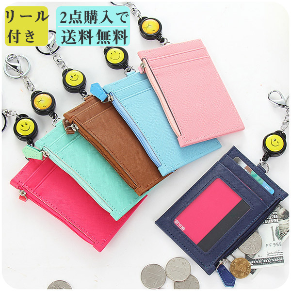 【2点購入で送料無料】 パスケース カードケース リール付き 伸びる ICカード 小銭入れ 伸縮 定期入れ IDカード レディース メンズ おしゃれ