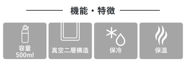 容量は市販のペットボトルと同量程度の500mlサイズで、日常使いにぴったり。バッグで持ち運ぶ際にも入れやすい大きさです。