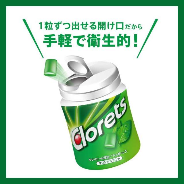 *1: 2022年当社調べ。「オリジナルミント」については調査対象の83%が製品を30分間噛んだ時点において「息がスッキリ感じる」と回答。調査人数:100名。調査対象者:3か月以内に、ミント味ガムを自購入消費した18-59歳の男女(「クロレッツガムは購入したくない」人は除外)