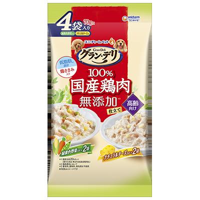 着色料・調味料・発色剤を使用せずに、美味しく調理しました 良質な国産鶏肉を生肉のまま調理した美味しい鶏ささみ入りのレトルトパウチです。 緑黄色野菜入りとナチュラルチーズ入りがそれぞれ2袋ずつ入った嬉しいアソート4個パック 高齢の愛犬の食べやすさを考えて、お肉を小さくカットしました。 4520699648063