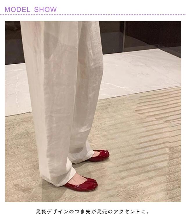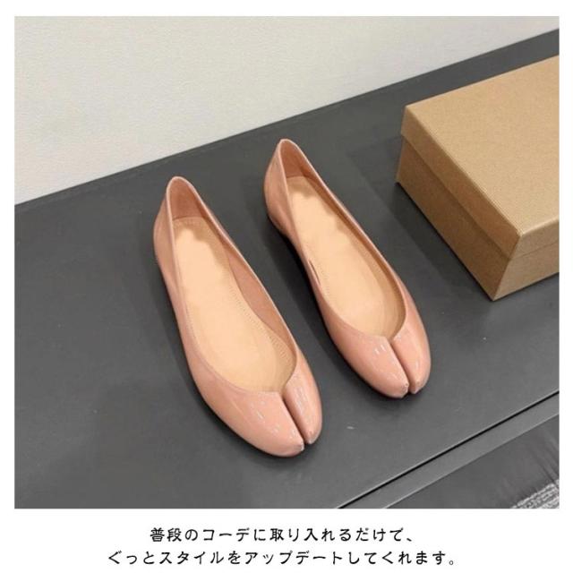 | 新型足袋バレエシューズ。 ■ぺたんこ仕様で疲れにくい 歩きやすく、おでかけにもぴったり。 ■足に優しいやわらか素材 生地は足にフィットするソフトレザー仕様で履き心地が良いです。 ■特徴的なデザイン 足袋デザインのつま先が足元のアクセントに。 普段のコーデに取り入れるだけで、 ぐっとスタイルをアップデートしてくれます。 | |