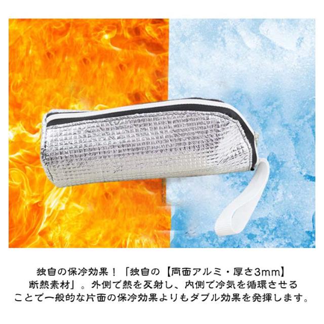 | 6時間経っても氷が残るほど保冷性が高い。4個セット。結露対策ができてカバンが濡れにくい。 保冷・保温ボトルカバー。650mlまで適用!ペットボトルを全て覆うポーチ型保冷・保温カバーです。 独自の保冷効果!「独自の【両面アルミ・厚さ3mm】断熱素材」。外側で熱を反射し、内側で冷気を循環させることで一般的な片面の保冷効果よりもダブル効果を発揮します。 結露対策!「裏地全体がマイクロファイバータオル仕様」で結露対策ができてカバンが濡れにくい。 ファスナーでしっかり収納、簡単取り出し。 衝撃吸収で水筒などを保護! 着脱簡単なバックルで鞄や自転車に! | |